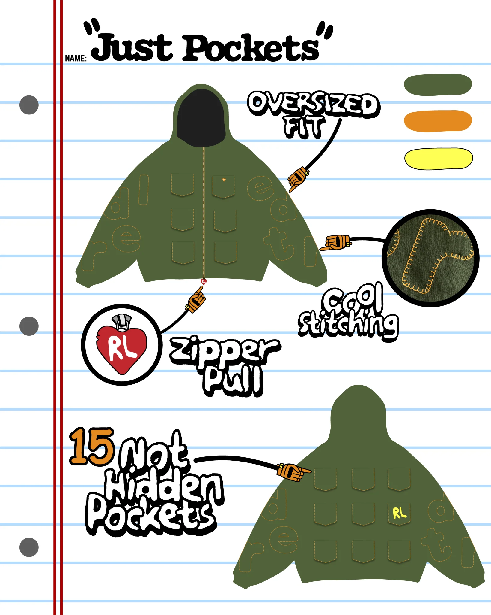 RED LETTERS Just Pockets Scattered Zip Up - Moss